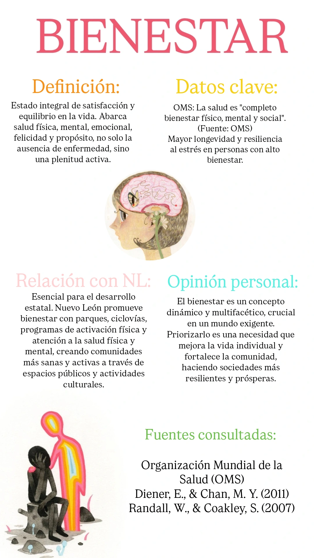 Define la calidad de vida de manera clara y enumera sus componentes, destacando el equilibrio social y emocional. Contextualiza a Nuevo León, señalando su buena calidad de vida pero también su mala calidad ambiental, lo cual muestra análisis crítico y comprensión del tema.